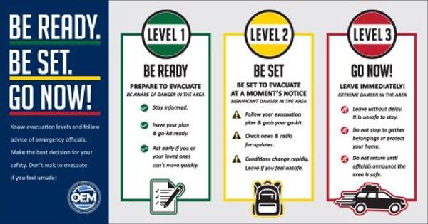 Develop an Emergency Plan using an evacuation checklist as a guide. Know the different routes in and out of your community, neighborhood, and work and/school. Create a family communication plan. This plan should include an out-of-area contact, a family meeting place outside of hazard area, and how you will contact each other in case you are separated during an emergency. Have a plan for pets and large animals such as horses and other livestock.
